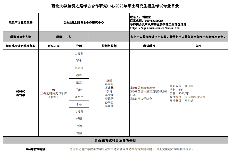 西北大学考研辅导班:2023年西北大学丝绸之路考古合作研究中心硕士招生专业目录及参考书目