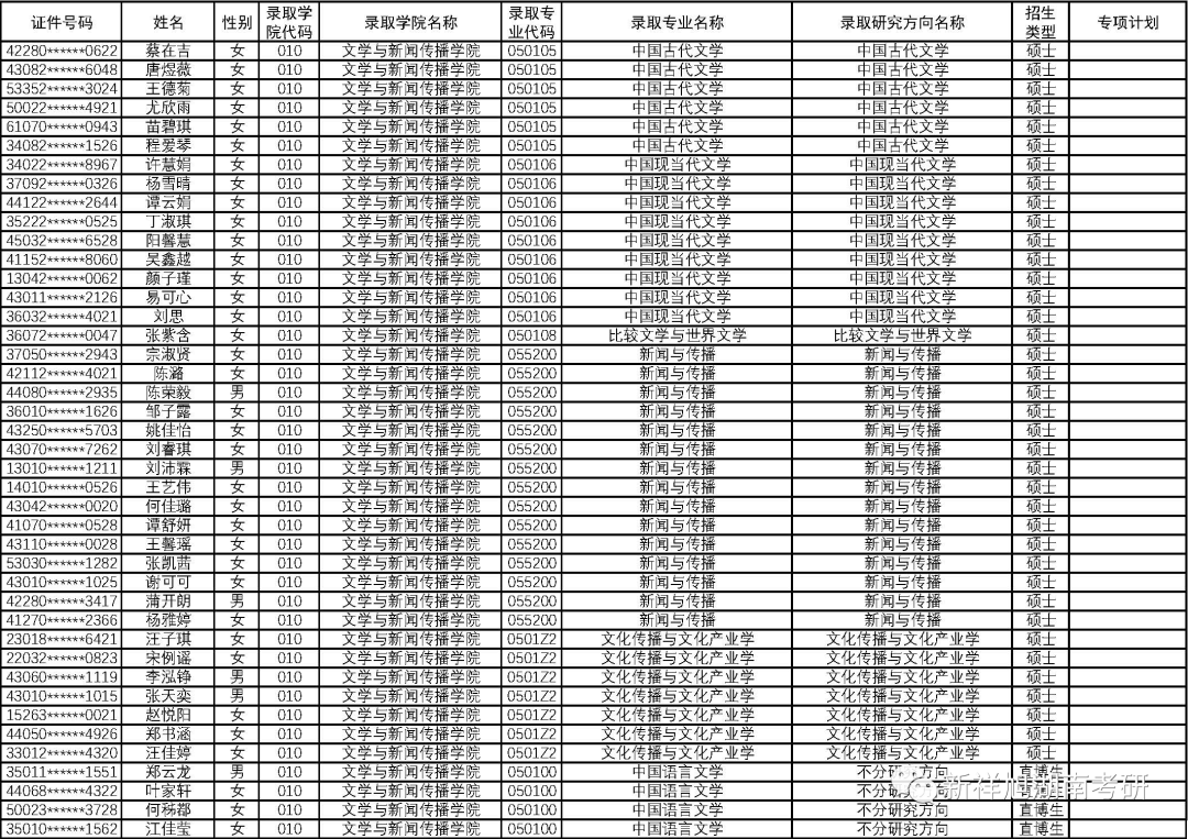 2023年中南大学文学与新闻传播学院拟录取推荐免试研究生名单公示