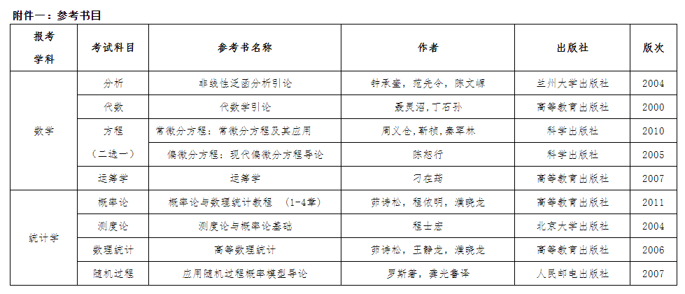 (1)报考数学学科:分析、代数、方程(常微分方程或偏微分方程二选一)、运筹学。