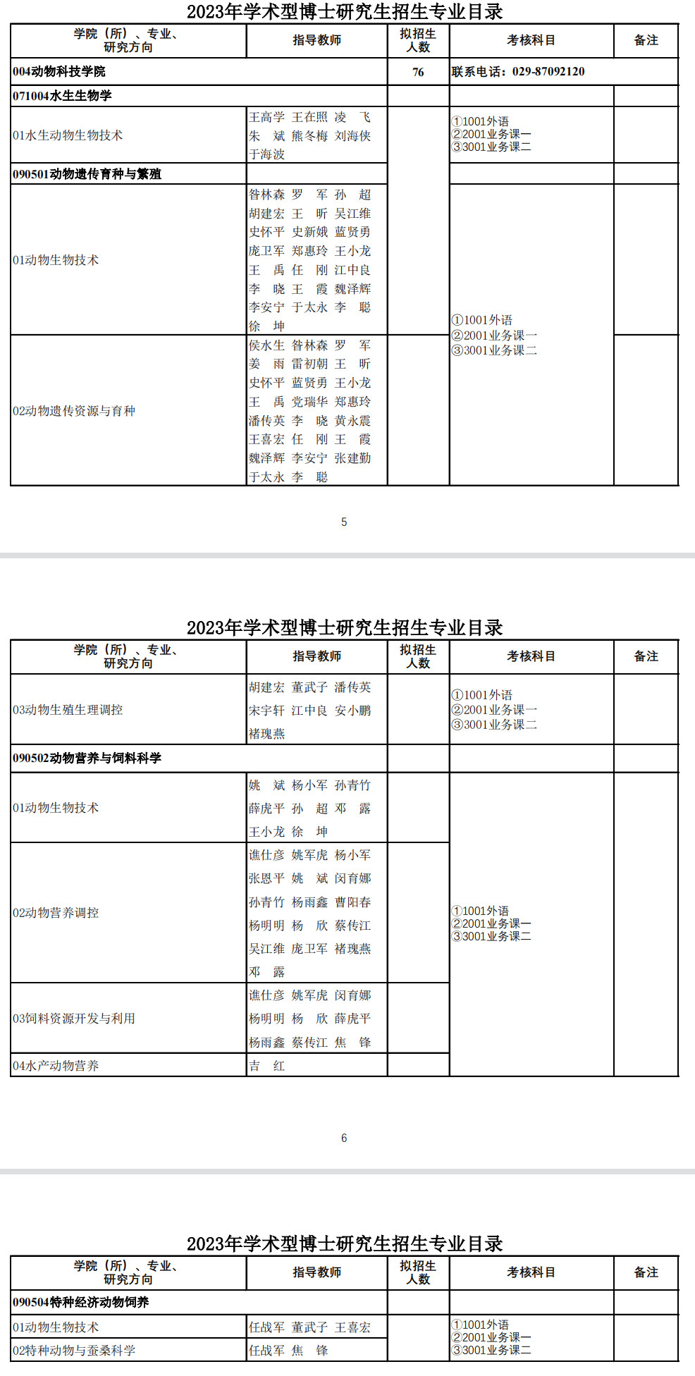 新祥旭考研:西北农林科技大学2023年动物科技学院博士研究生招生专业目录