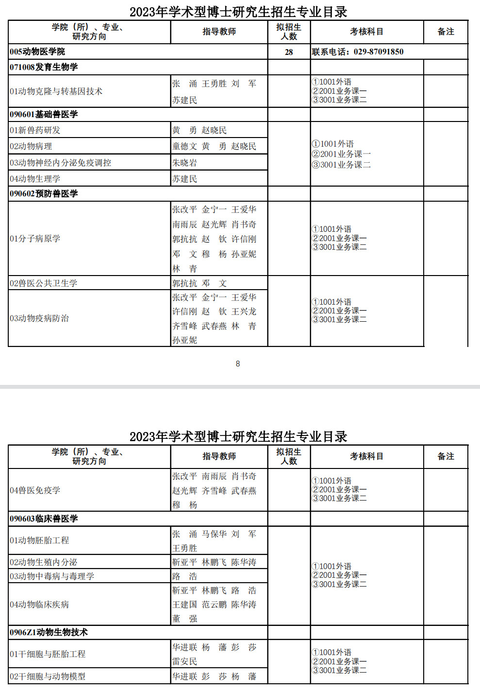 新祥旭考研:西北农林科技大学2023年动物医学院博士研究生招生专业目录