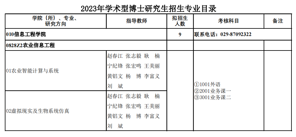 新祥旭考研:西北农林科技大学2023年信息工程学院博士研究生招生专业目录
