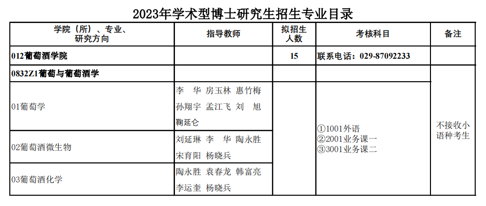 新祥旭考研:西北农林科技大学2023年葡萄酒学院博士研究生招生专业目录