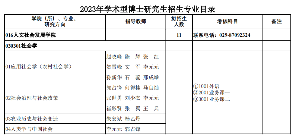 新祥旭考研:西北农林科技大学2023年人文社会发展学院博士研究生招生专业目录