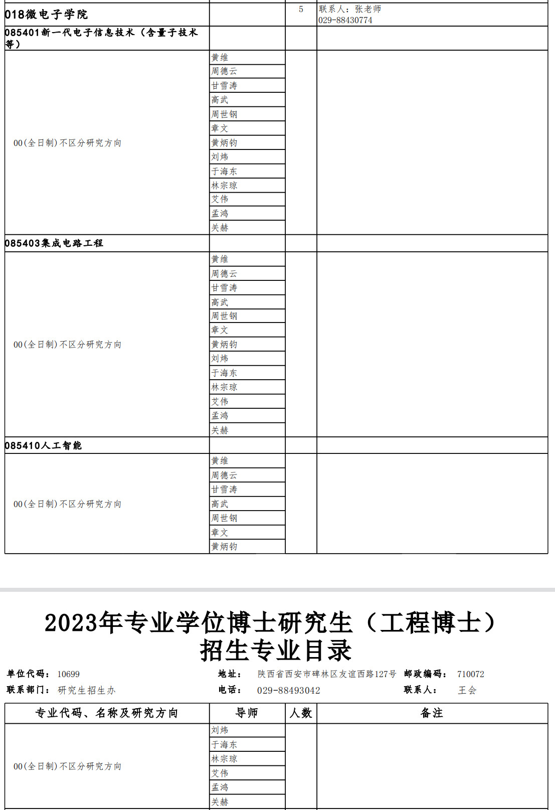 西北工业大学2023年微电子学院专业学位博士研究生招生专业目录