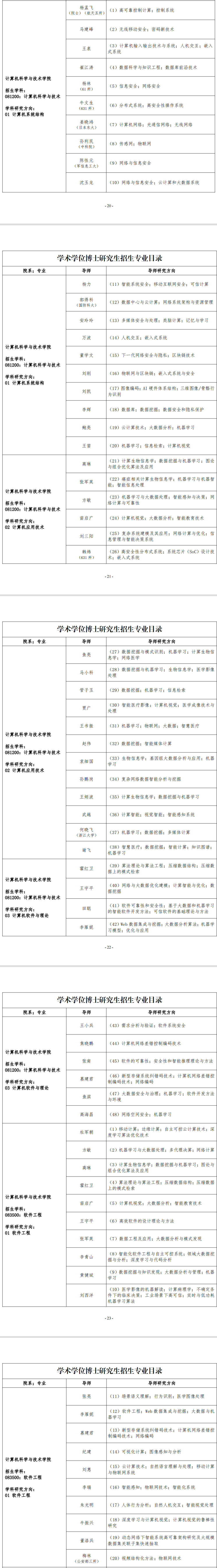 西安电子科技大学2023年计算机科学与技术学院学术学位博士研究生招生专业目录