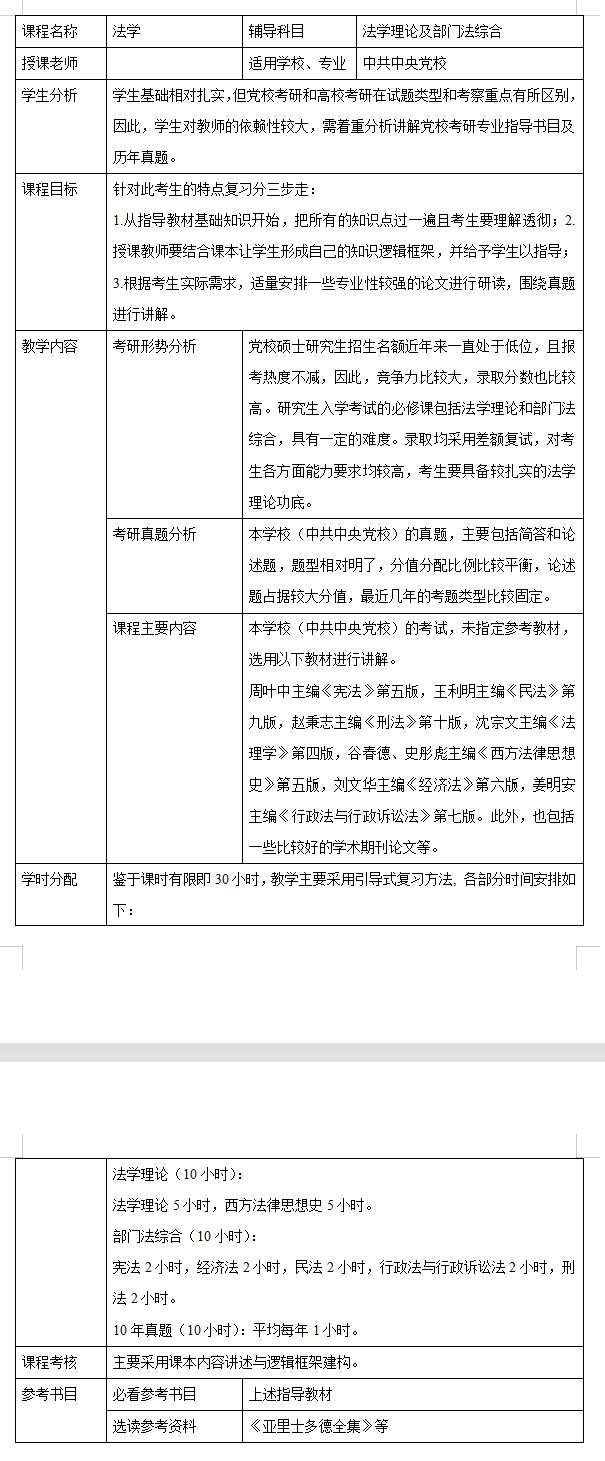 新祥旭考研一对一:2023年中共中央党校法学专业考研一对一辅导授课计划