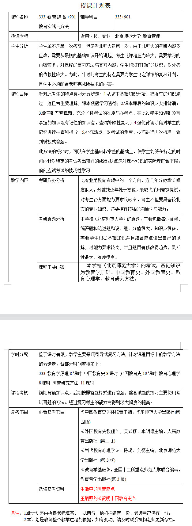 新祥旭考研一对一:2024年北京师范大学教育管理专业考研一对一辅导授课计划