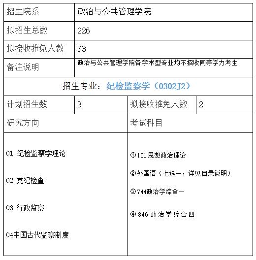 2018年中国政法大学纪检监察学(0302J2)考研参考书目、招生人数、考试科目、专业指导、经验