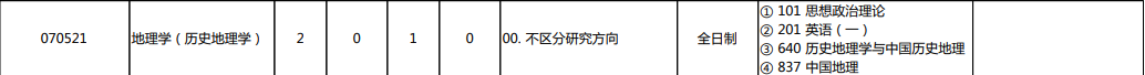 科目:① 101 思想政治理论② 201英语一③ 640 历史地理学与中国历史地理