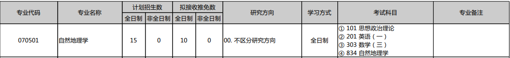 科目:① 101 思想政治理论② 201英语一③ 303 数学(三)④ 834 自然地理学