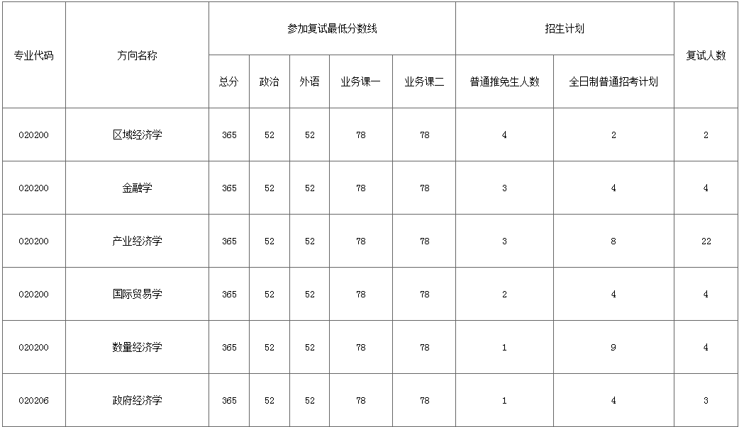 总分365;政治(52分);外语(52分);业务课一(78分);业务课二(78分)