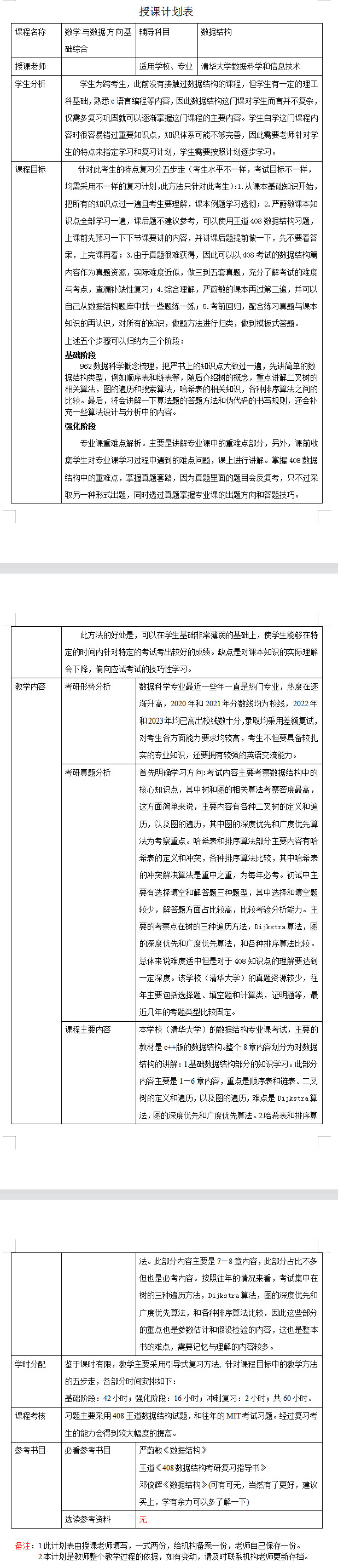 新祥旭考研:2024年清华大学数据科学和信息技术考研一对一辅导授课计划