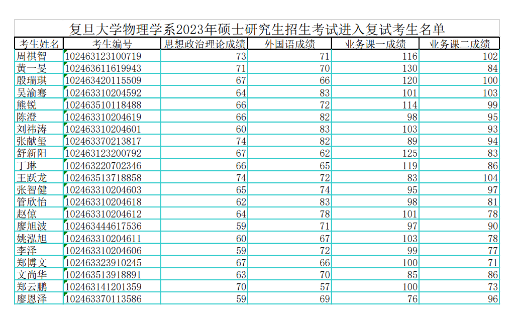 新祥旭上海考研:2023复旦大学物理学系研究生复试名单