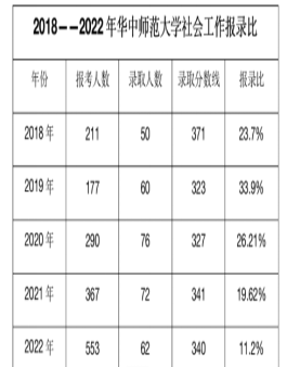 (2)华中师范大学社会工作专业考研报录情况及考研难度分析