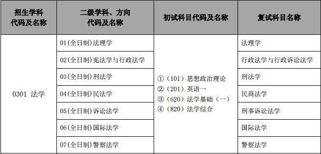 2018年中国人民公安大学法学0301(学术硕士)考研参考书目、招生人数、考试科目、专业指导、经验