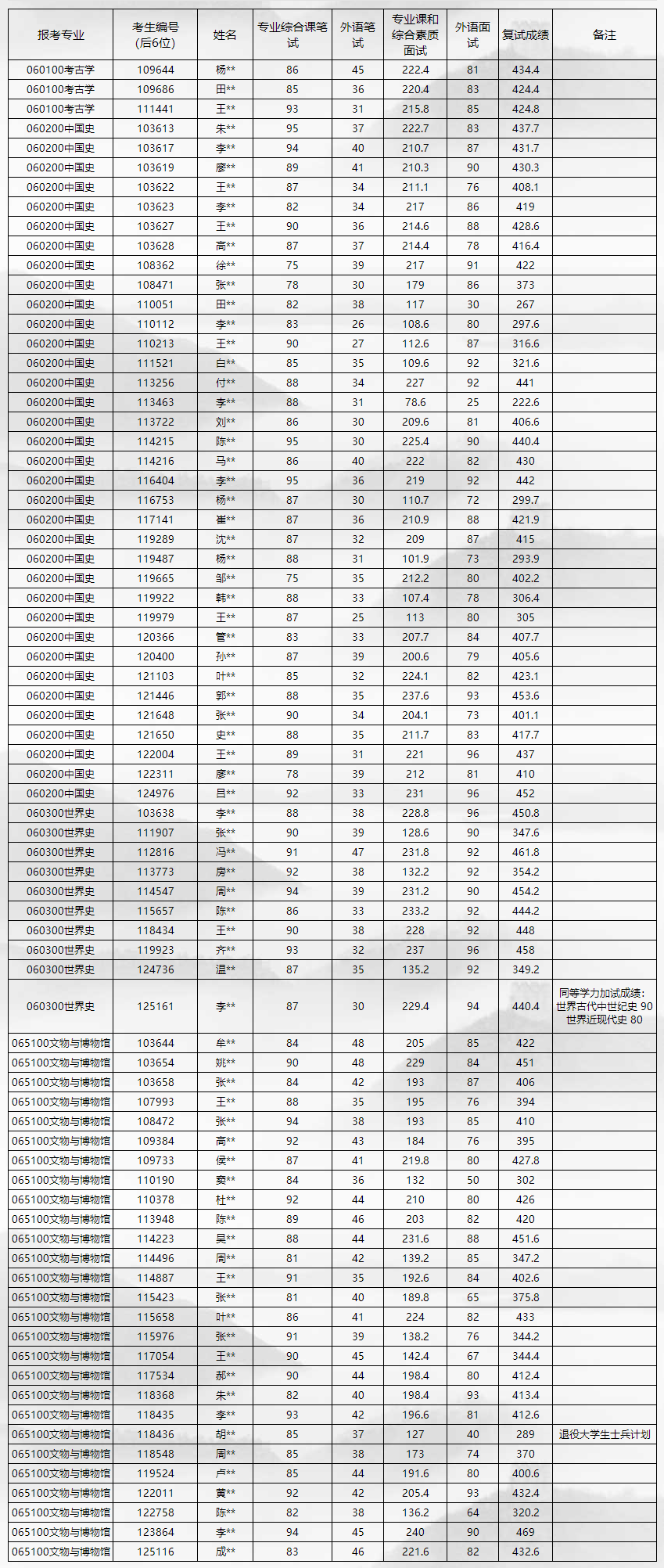 新祥旭考研:中国人民大学历史学院2023年硕士生招生考试复试成绩公示