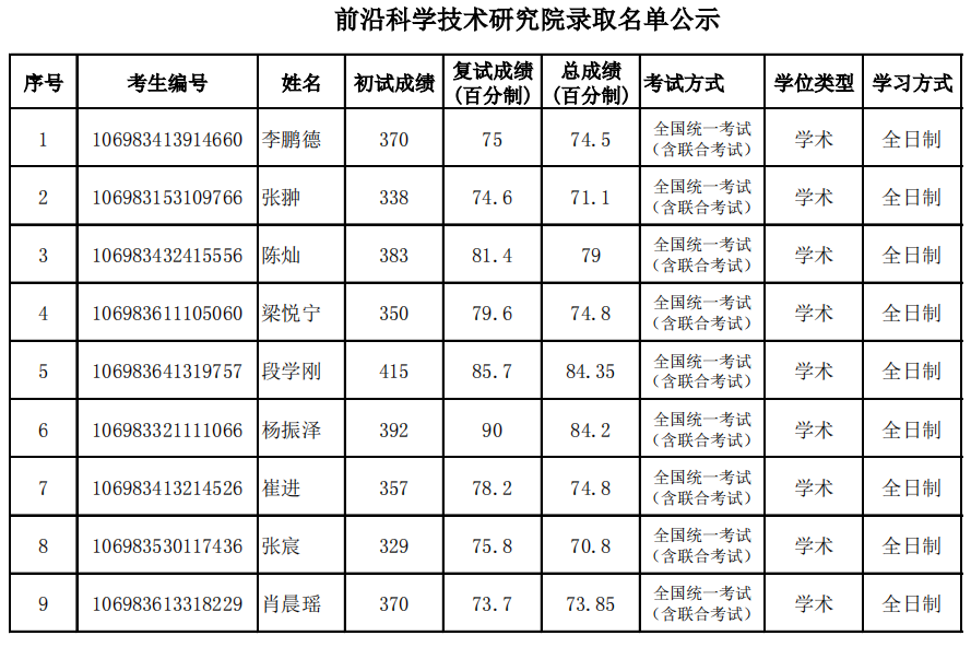 新祥旭西交堂:2023年西安交通大学前沿科学技术研究院硕士研究生拟录取名单