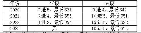 可以看到,从22年开始,无论是学硕还是专硕,分数线都非常高,23年最低分375,但是其实这位同学是复试成绩很好,所以实际上初试最少还是要380以上。相比于专硕,学硕23年无一人上线,复试线为300,其实是很好上的。