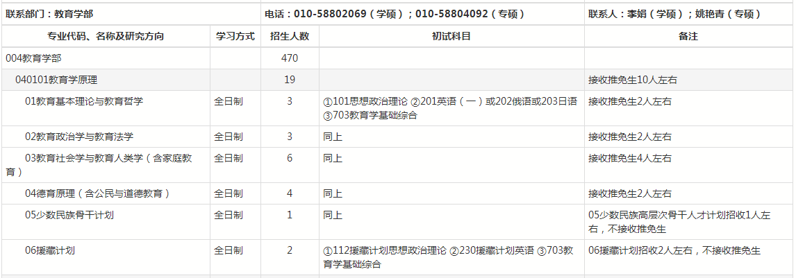 040101教育学原理、040102课程与教学论、040103教育史、040105学前教育学、040106高等教育学和047101教育经济与管理按方向排序,040109特殊教育学01-06方向考生整体排序;除此之外,其他均按专业排序。根据考生总成绩从高到低依次录取。总成绩相同时,按初试总分从高到低依次录取。复试不合格考生不予录取。