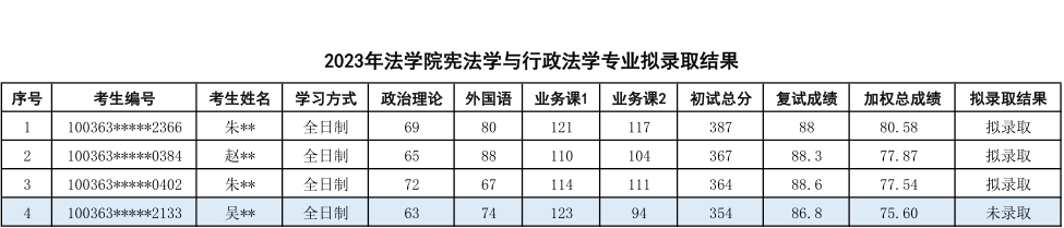六、宪法学与行政法学专业2023年考研拟录取结果