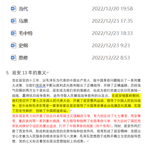 对于论述题而言,我跟大多数人一样,都是等到12月份肖四和腿姐最后冲刺课出来的时候才开始正式背书的。我的背书步骤是:将肖四和腿四所押的有重合性的题目按学科分别整理→每一道题的答案都是肖四和腿四的参考答案综合加总,并结合腿姐最后9页纸补充(如后图所示)将腿四和肖四的零星题目补充入内形成5门学科(马原、近代史、毛中特、思修和世界时事)的5个word文档