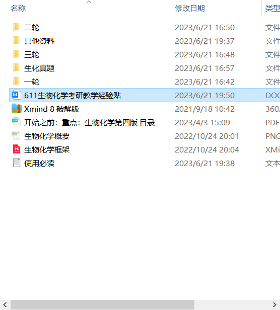 这些资料,包含了所有的学习611生物化学甲所需要的常用的材料,都是我经过精心挑选的适合这个考试和内容的,不会杂乱无章。
