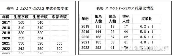 可以看到从报录情况来看,生医学硕的录取人数在近几年都比较稳定,并且隐隐有些上升的趋势。而生医专硕和东蒙专硕的录取人数则有所波动,生医专硕一般只会招个位数,虽然分数低一些,可是机会太少,我一般不会考虑这样的专业。考研难度方面,虽然2022年的报录比达到了7.1,理论上考研难度有所增加,但我认为报录比并不能说明什么,因为报这个专业的有跨专业来的、有一战不努力的(我就是典型)、有被毕设折磨的还有报个名的气氛组,其实真正剩下来好好复习的并没有想象中的多。真正的难度还是要看录取分数的中位数和录取的最低分数。