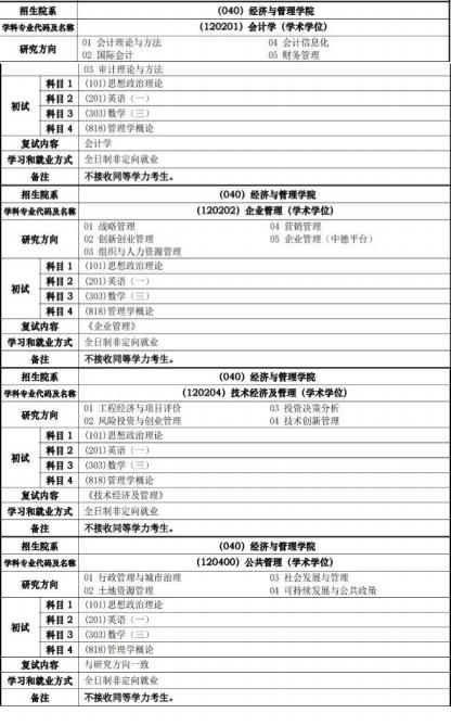 (120400) 公共管理。考试科目均为:(101) 思想政治理论、(201) 英语一、