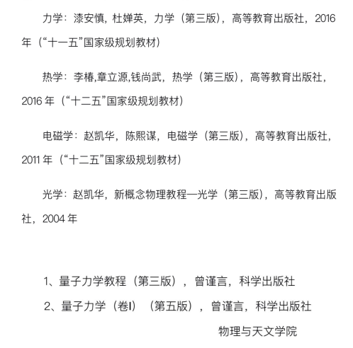 考试科目:101思想政治理论、201英语一、830大学物理、621量子力学