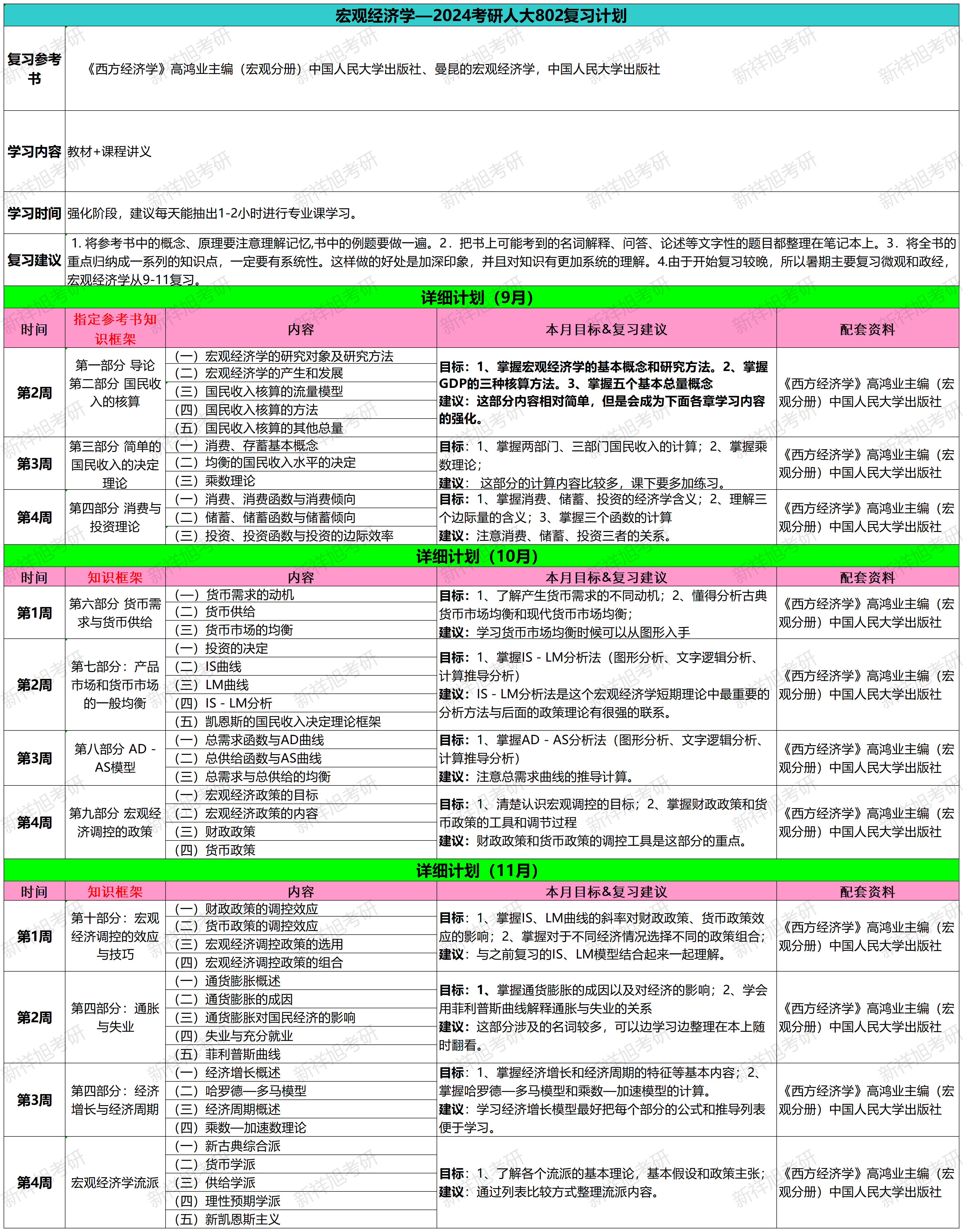 新祥旭考研:宏观经济学—2024考研人大802复习计划