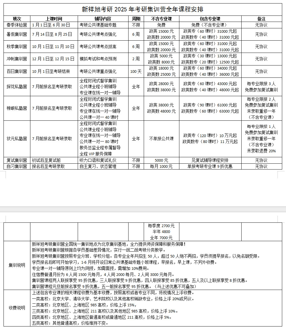 (四)新祥旭集训营全年课程安排