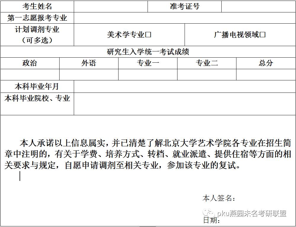 4、北京大学艺术学院2017年硕士研究生调剂申请书