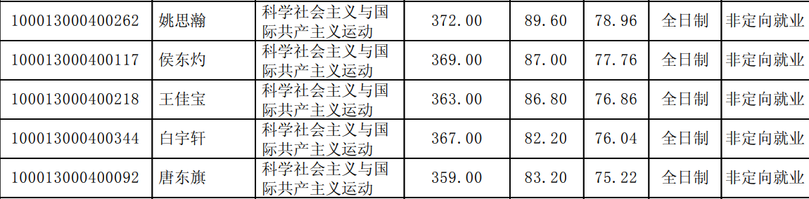 2023年计划招生6人,实际录取5人,录取的最低分是359分,录取最高分372分,备考过程中目标分数奔着360+去考,只有这样才具有竞争力,通过录取名单可知录取考生的初试分数并不特别大,造成这样的原因就是因为不考数学,大家的分数其实拉不开太大的差距,北京地区政治英语大家的分数基本都是70到75之间,然后专业课大家认真复习好好备考也就5到10分左右的差距,因此才会出现分数差距不大。这也说明了大家在备考过程中需要全力以赴,无论初试还是复试都需拿出百分之百的状态去对待。