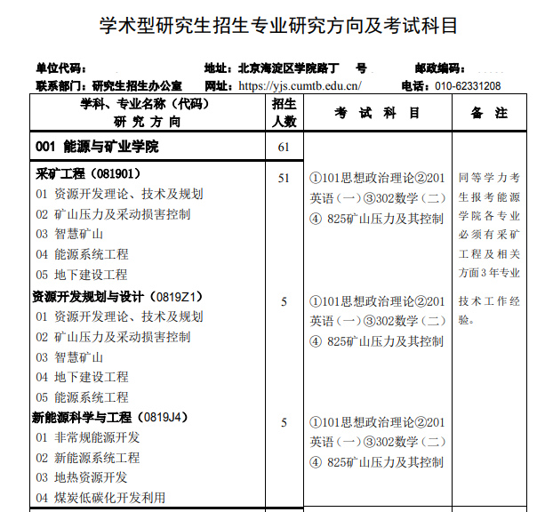 二、中国矿业大学资源开发规划与设计专业目录