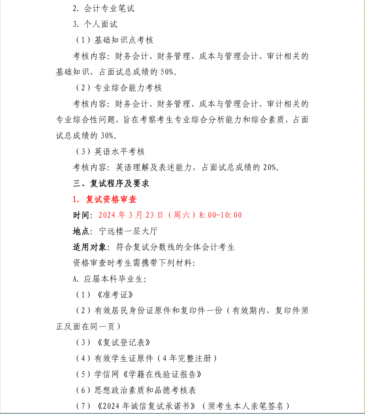 对外经济贸易大学国际商学院会计硕士(MPAcc)2024年硕士研究生招生考试复试方案