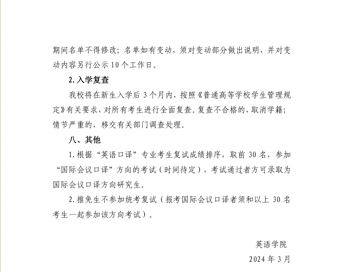 对外经济贸易大学英语学院2024年硕士研究生招生考试复试方案