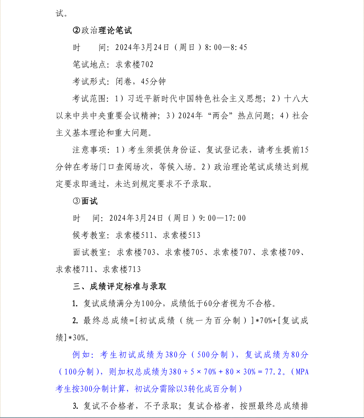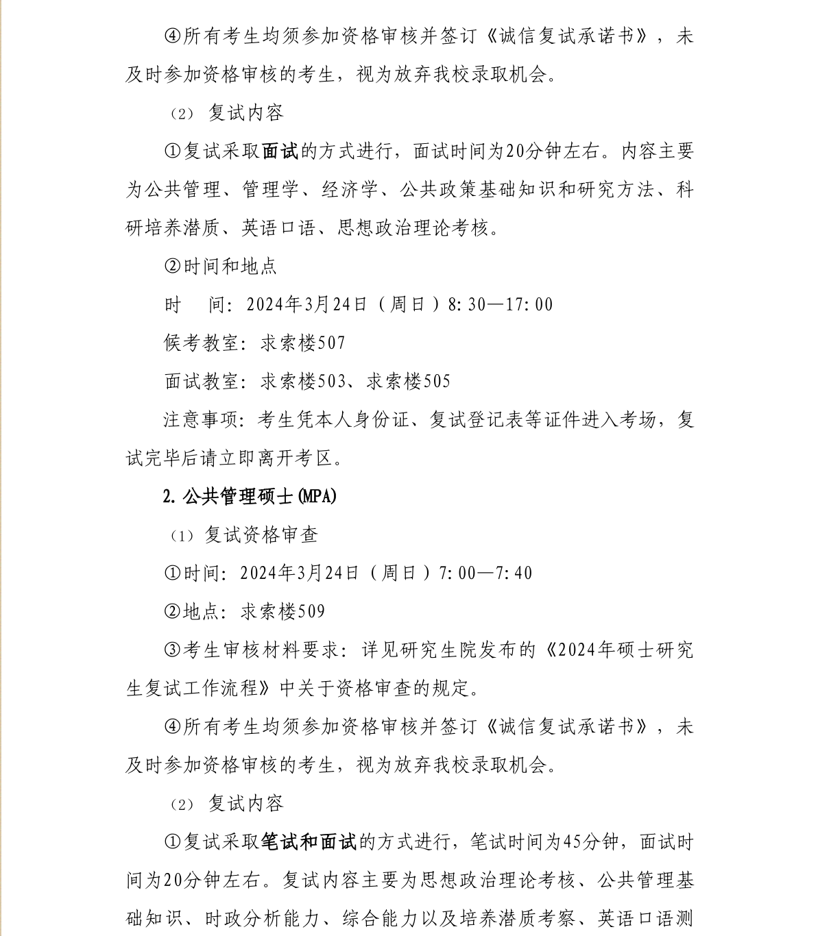 对外经济贸易大学政府管理学院2024年硕士研究生招生考试复试方案
