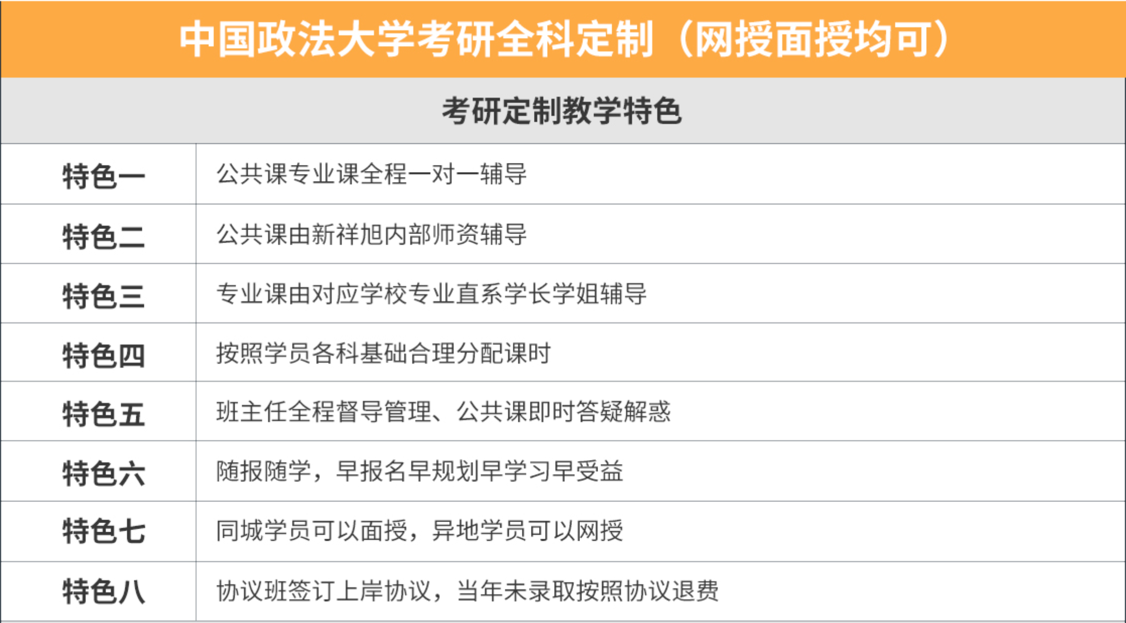 新祥旭考研专注中国政法大学考研全科定制辅导,以效果为导向,以上岸为目标,为广大考研学生提供个性化、定制化、多对一的考研全科全程辅导,考研公共课和考研专业课皆为一对一辅导,全国各地考研学生可以面授也可以网授,力争让考研学生顺利考取中国政法大学攻读硕士研究生。