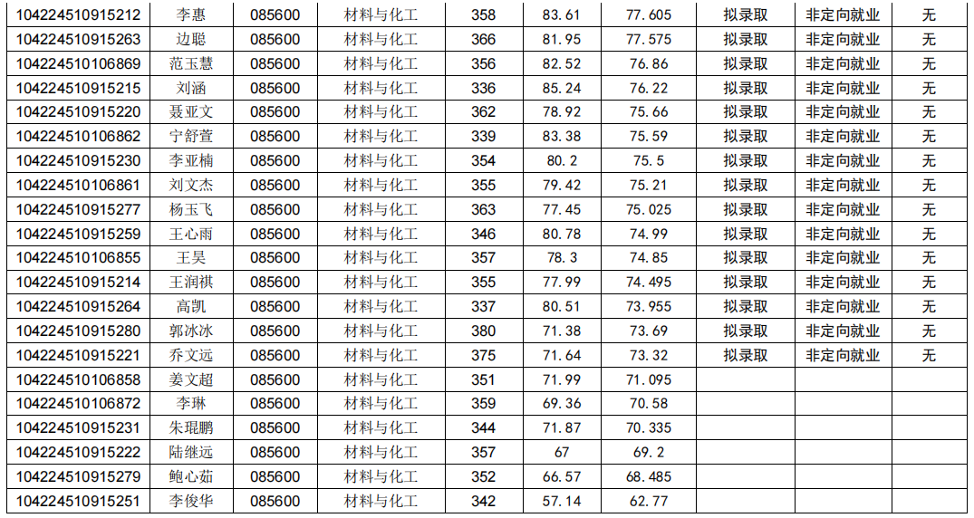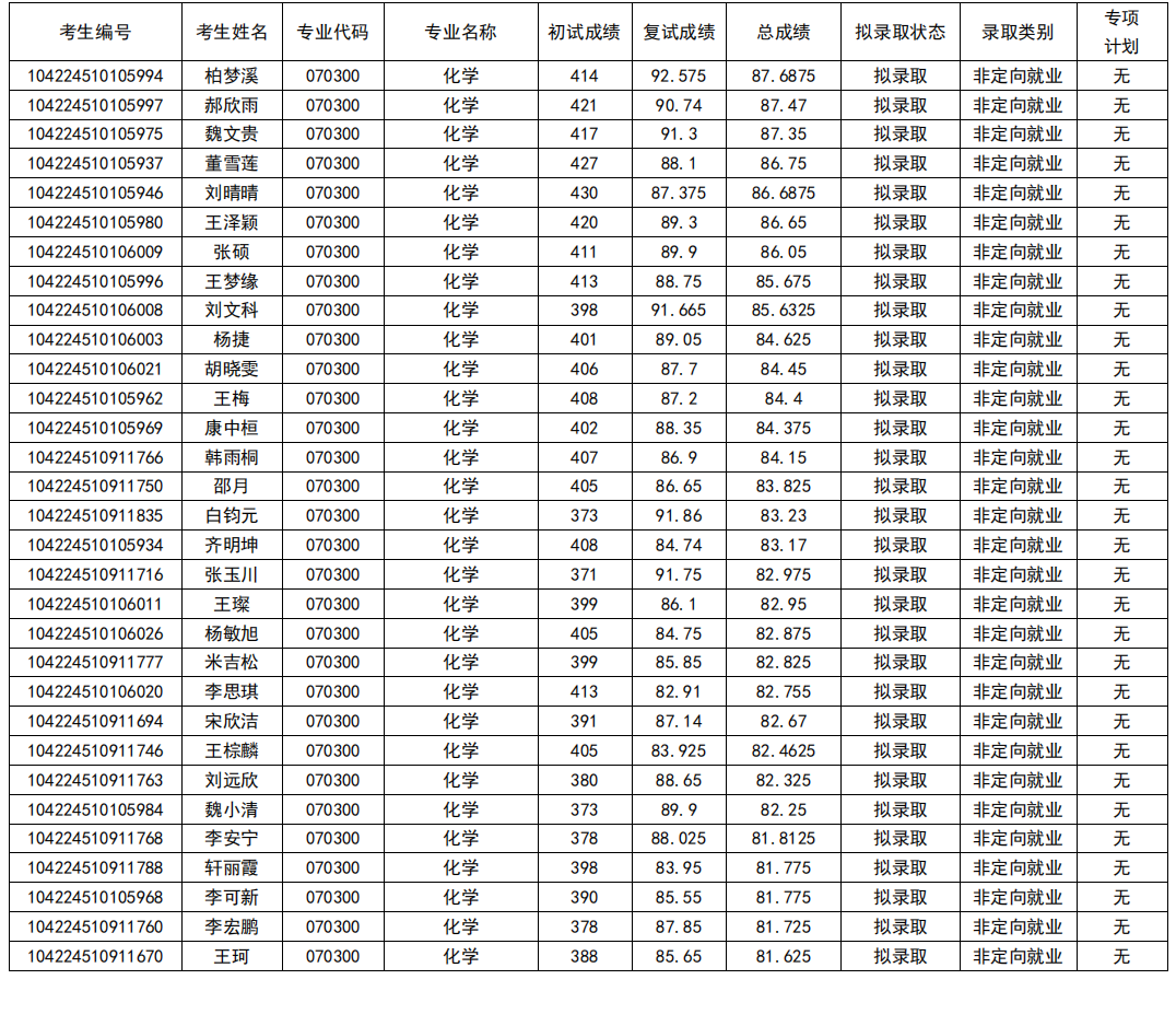 (四)拟录取名单