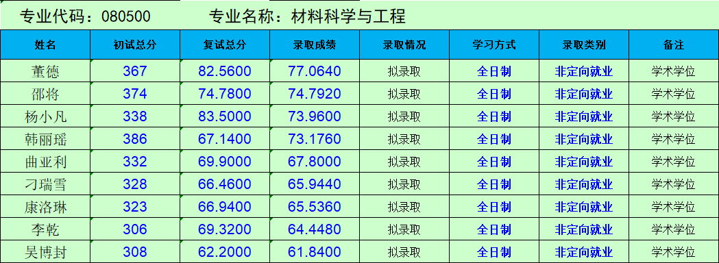 报考材料科学与工程专业的学术学位考生按本类型的最终总成绩进行排序,以排序的先后顺序来确定录取名次。