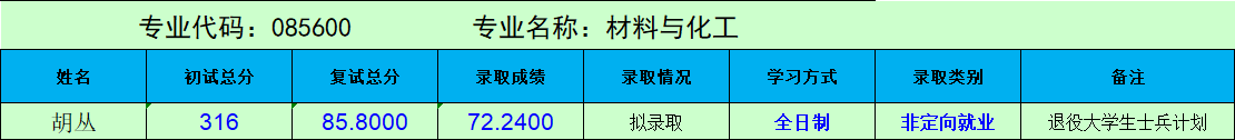 报考材料与化工专业的专业学位考生按本类型的最终总成绩进行排序,以排序的先后顺序来确定录取名次。