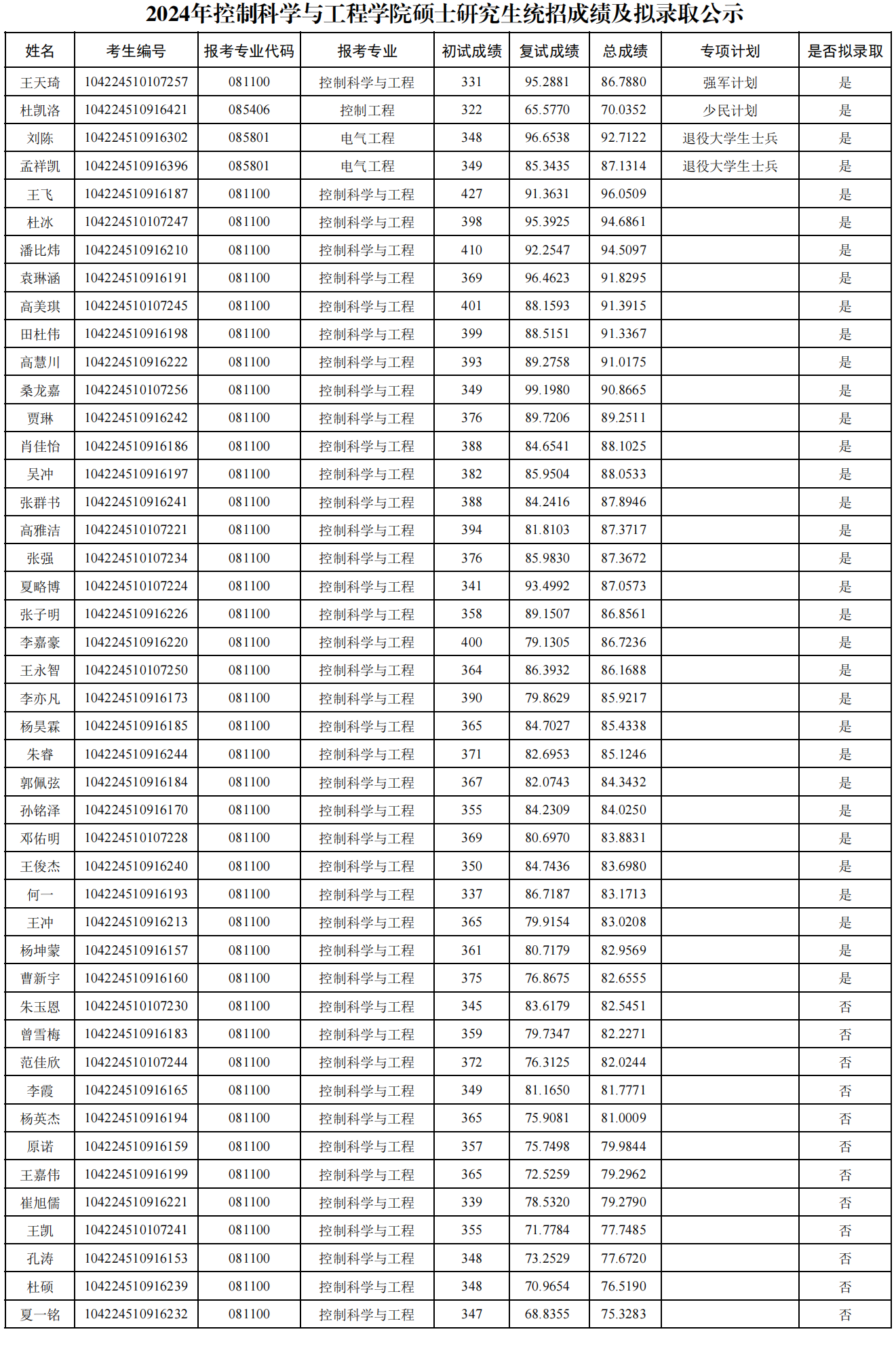 2.根据招生计划和报考志愿,总成绩按专业排名,由高到低确定拟录取名单。