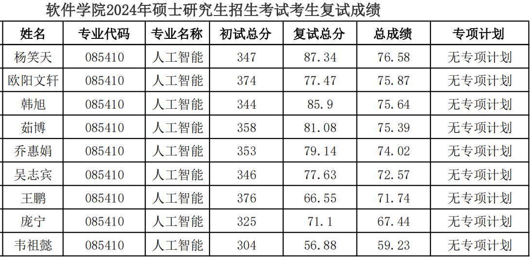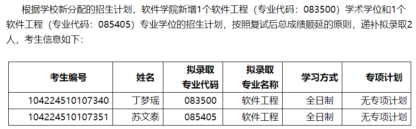 各个专业按照一志愿优先的原则进行录取。其中,复试成绩不合格者(复试成绩低于60分),不予录取。