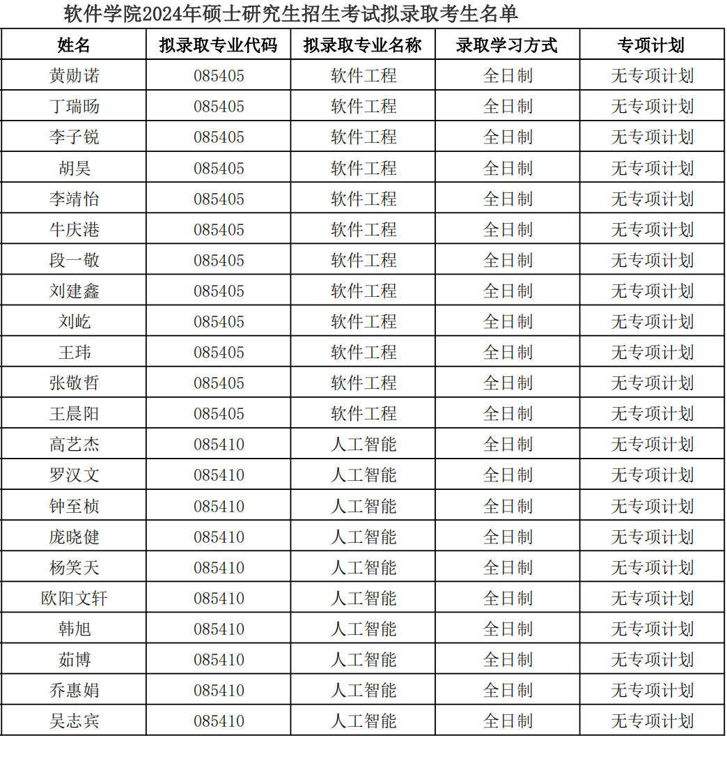 五、拟录取名单