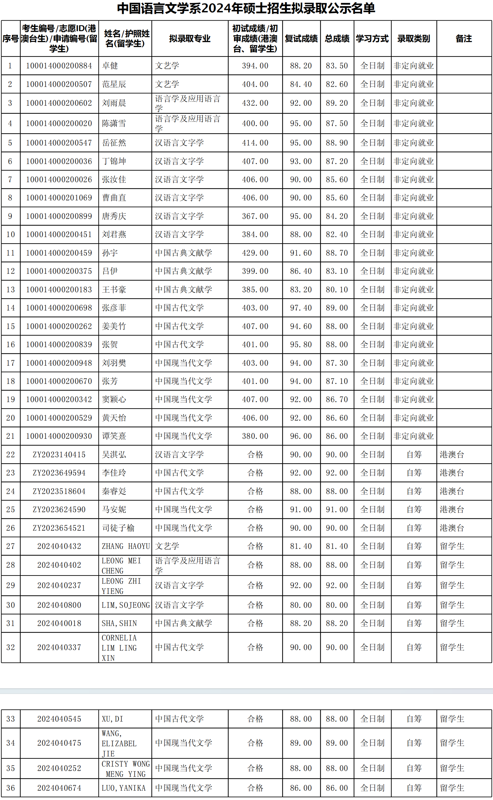 二、拟录取名单