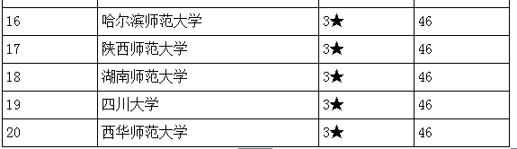①“5★”为重点优势学科的单位,即排在最前面的5%的培养单位;②“4★”为优势学科的单位,占单位总数的15%,即排在5%~20%的单位;③“3★”为良好学科的单位,占总数的30%,即排在20%~50%的单位;④“2★”为一般学科的单位,占总数的30%,即排在50%~80%的单位;⑤“1★”为较差学科的单位,占总数的20%,即排在80%~100%的单位。