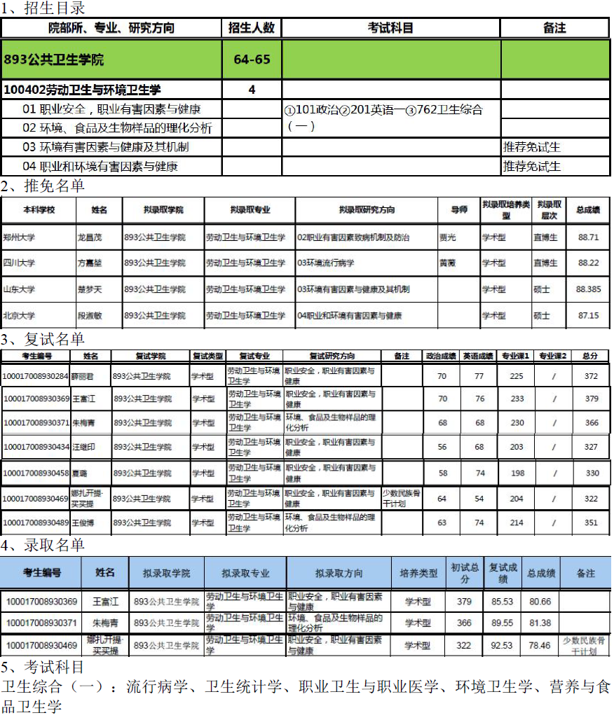 北京大学医学部100402劳动卫生与环境卫生学考研目录