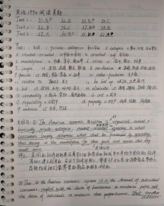 这里我用了两种记笔记的模式,在一开始过阅读真题的时候用的是错题订正+生词词组+长难句分析及译文这种模式