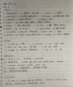 到了后期熟悉的阅读方法及思路之后运用的是生词词组+错因分析+作文积累这种模式。因为到了后期长难句已经不是妨碍阅读的关键了,关键的是解题的思维模式。所以做了调整。